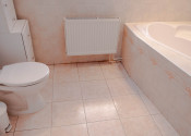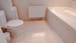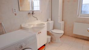 Kúpelňa so sprchovým kútom a vaňou a toaletou, plus 1 samostatné WC v predsieni.