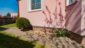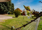 Pri dome sa nachádza samostatne stojaca garáž vo výmere 20m2. Okolie domu je upravené výsadbou drevín, udržiavaný trávnik.