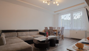 Výmera bytu je krásnych 75 m2. Byt sa predáva so zariadením, ako vidno na fotografiách. Byt je kompletne zariadený - nechýba umývačka riadu, práčka, rohová sedacia súprava, vstavané skrine, postele.