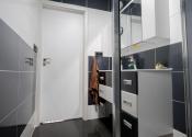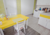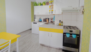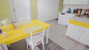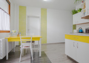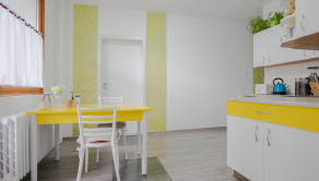 Je kompletne prerobený, zaujímavo riešená zmenená dispozícia bytu pôsobí veľmi zaujímavým nezvyčajným dojmom. Svojim atypickým riešením a vzhľadom zaujme každého záujemcu. Priestranná kuchyňa s jedálenským stolom má vstup do loggie. Tri priestranné izby poskytujú veľa možností aj na úložný priestor. V kúpeľni sa nachádza aj vstup do technickej miestnosti (nie je na fotografiách).