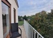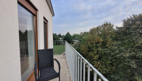Byt disponuje : presieň, samostatná toaleta s umývadlom, chodba, kúpeľňa, spálňa s balkónom, izba s balkónom, priestranná obývačka s kuchyňou a pozdĺžnym balkónom.